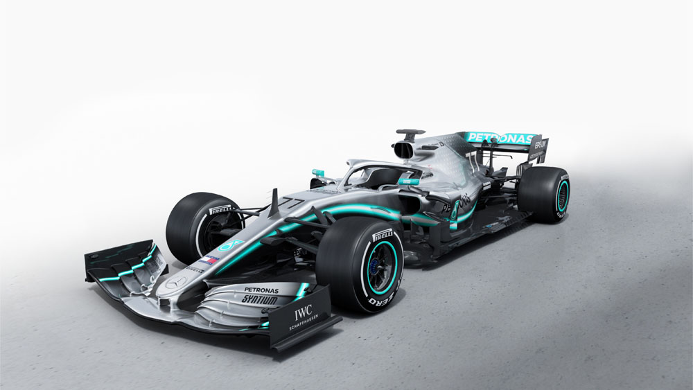 Grande favorita de 2019, a Mercedes busca seu sexto título consecutivo de construtores, um recorde na categoria. Hoje, com cinco, divide a honraria com a Ferrari do período de 2000 a 2004. A Mercedes chegou a soltar teasers de um carro com uma pintura camuflada, dando a entender que poderia inovar em seu esquema de cores, mas a apresentação oficial revelou que o tradicional prata permanece predominante. No novo W10, a traseira ganhou mais tinta preta e uma interessante pintura na cobertura do motor. O carro é uma evolução do bem-sucedido projeto que vem empilhando títulos desde 2014, e qualquer coisa que não seja mais um caneco seria uma grande decepção para o time alemão. A dupla de pilotos permanece a mesma das últimas duas temporadas, com o inglês Lewis Hamilton e o finlandês Valtteri Bottas.