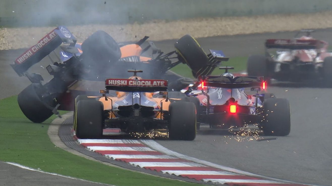 Com o apagar das luzes vermelhas, Hamilton pulou à frente de Bottas para assumir a liderança e de lá não mais sair, enquanto Leclerc tomou o terceiro lugar de Vettel. Na curva 6, Daniil Kvyat se viu prensado no meio das McLarens de Carlos Sainz e Lando Norris, que quase capotou ao ter seu pneu traseiro tocado. Pior para a dupla da equipe inglesa, que teve que parar nos boxes e caiu para o fundo do grid. Kvyat foi penalizado com uma passagem pelos boxes – punição exagerada, em nossa opinião.
