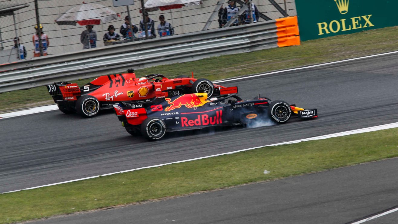 Na volta 18, Verstappen abre a rodada de pit stops trocando os pneus médios pelos duros. Vettel fez o mesmo na volta seguinte. Com pneus novos, os dois protagonizaram a grande disputa da corrida. Verstappen mergulhou por dentro do alemão no final do retão, mas tomou um lindo X e ficou para trás. A Ferrari ainda manteve Leclerc na pista com pneus gastos por mais 4 voltas, fazendo com que o garoto voltasse dos boxes em um quinto lugar distante de Vettel e Verstappen.