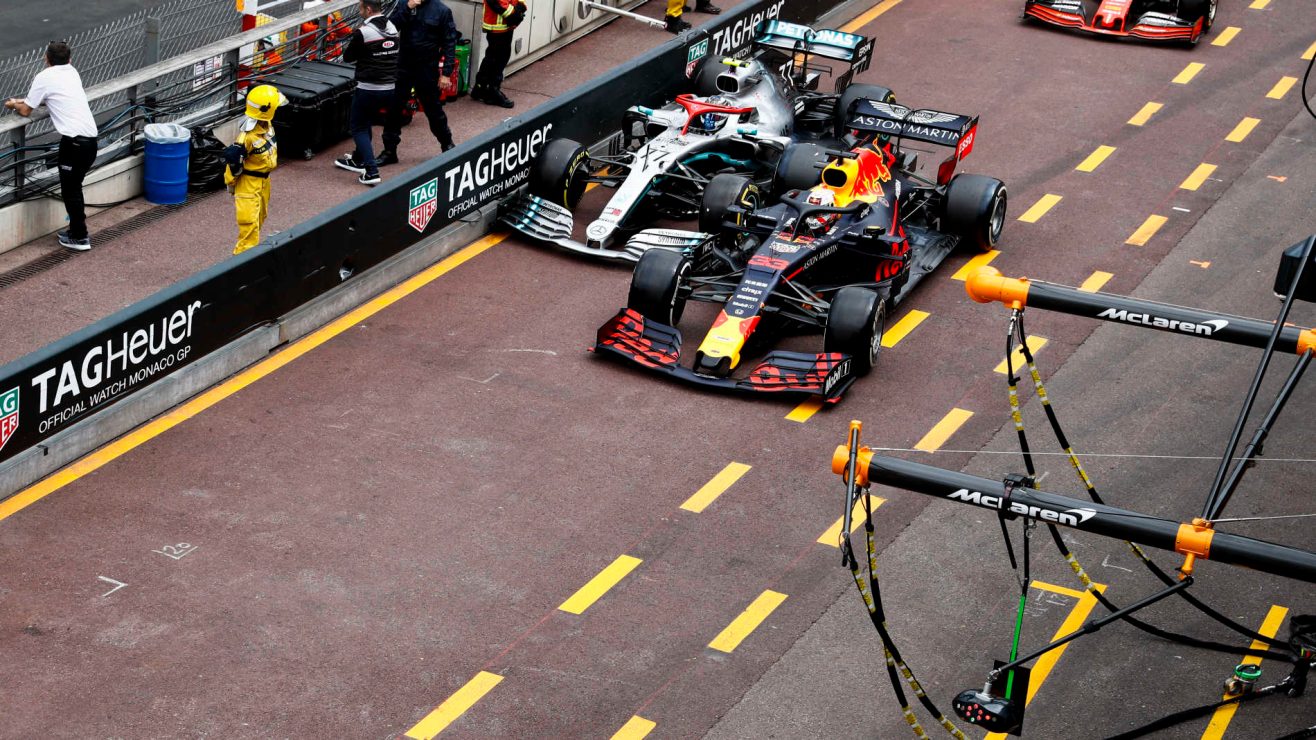 Na relargada, a sequência era Hamilton, Verstappen, Bottas e Hamilton. O inglês, já informado sobre a dificuldade de manter os pneus inteiros até o final, diminuiu o ritmo. O que se viu por algumas dezenas de voltas foi um “trenzinho” entre os quatro. Hamilton segurava a fila enquanto Verstappen não encontrava espaço para o ataque. Vettel e Bottas só observavam tudo de camarote. Ainda na volta 16, Giovinazzi tocou a Williams em Robert Kubica e causou um tumulto na Rascasse – felizmente contornado sem necessidade de outro safety car. Pouco depois, Leclerc, então 18º e com a corrida completamente prejudicada, teve que abandonar por problemas em sua Ferrari.